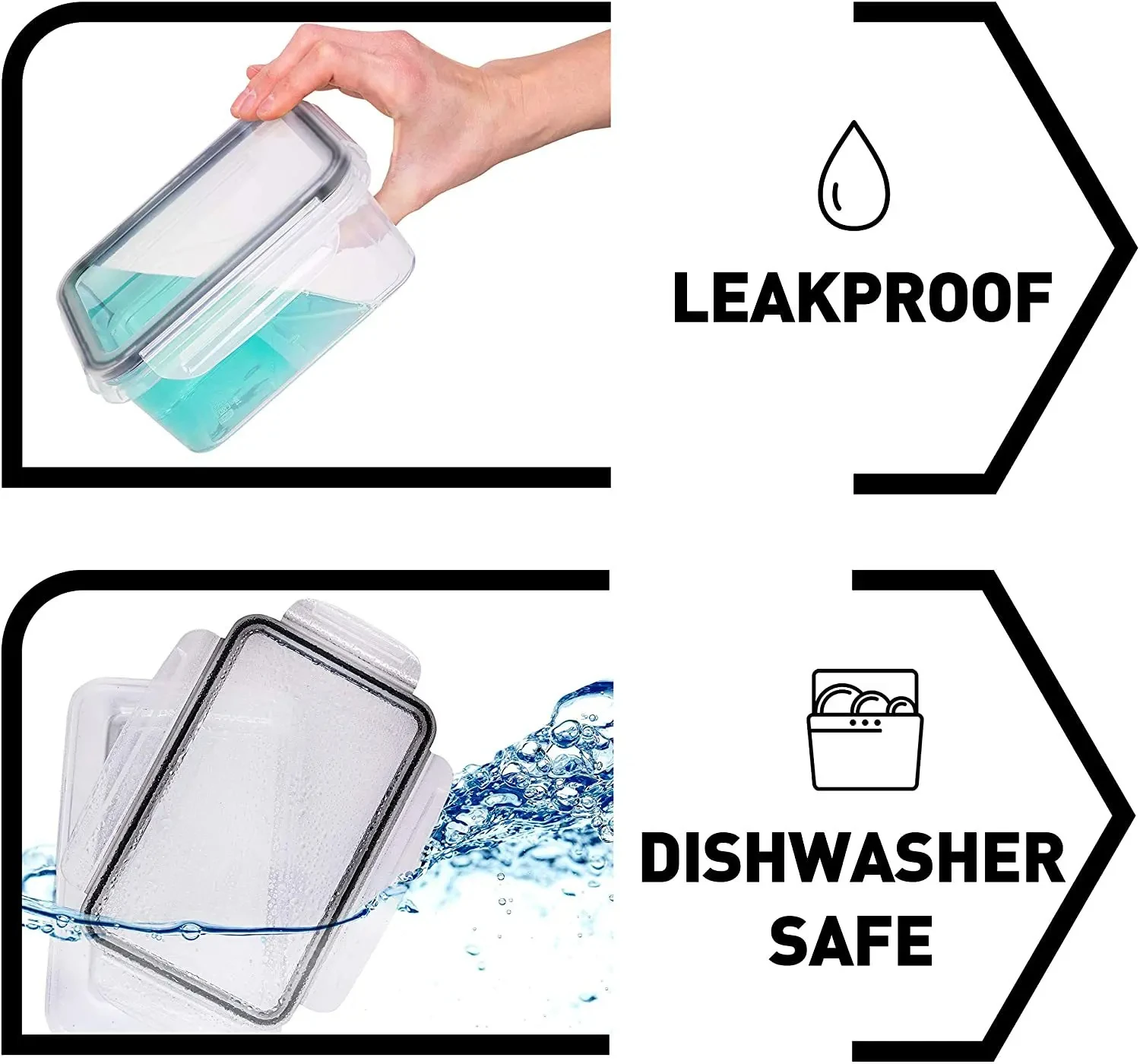 4 Piece Food Storage Containers Set with Easy Snap Lids (4 Lids + 4 Containers) - Airtight Plastic Containers for Pantry